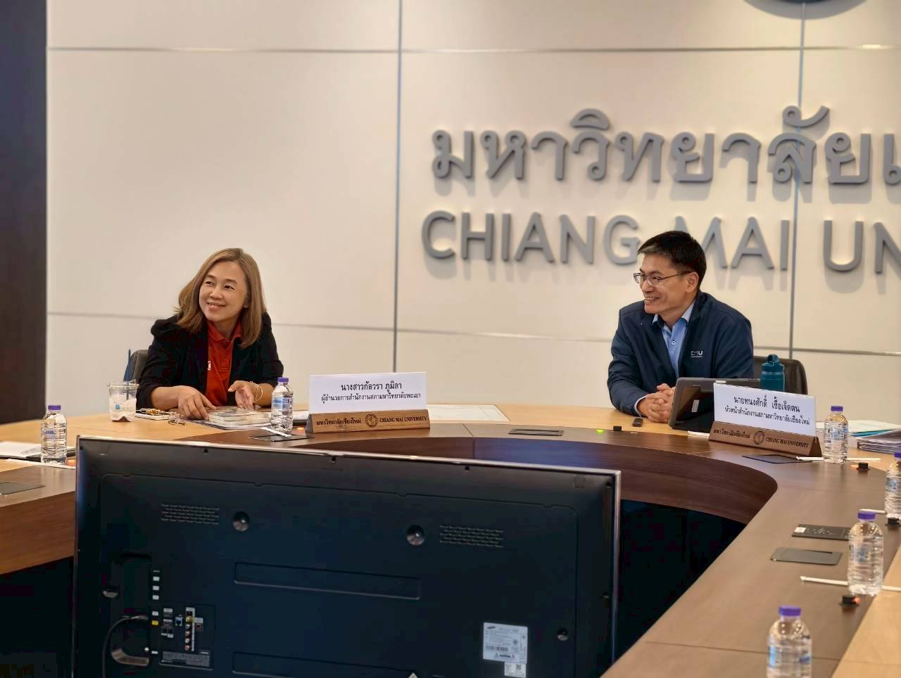 นายทนงศักดิ์ เชื้อเจ็ดตน หัวหน้าสำนักงานสภามหาวิทยาลัยเชียงใหม่ พร้อมด้วยบุคลากร ร่วมให้การต้อนรับนางสาวกัลวรา ภูมิลา ผู้อำนวยการสำนักงานสภามหาวิทยาลัยพะเยาและคณะ ในโอกาสที่มาศึกษาดูงานแลกเปลี่ยนเรียนรู้ด้านการบริหารงานและการดำเนินงานของสำนักงานสภามหาวิทยาลัยเชียงใหม่ ณ ห้องประชุมตะวัน กังวานพงศ์ อาคารยุทธศาสตร์ สำนักงานมหาวิทยาลัย มหาวิทยาลัยเชียงใหม่ วันพฤหัสบดีที่ 25 กันยายน พ.ศ. 2568