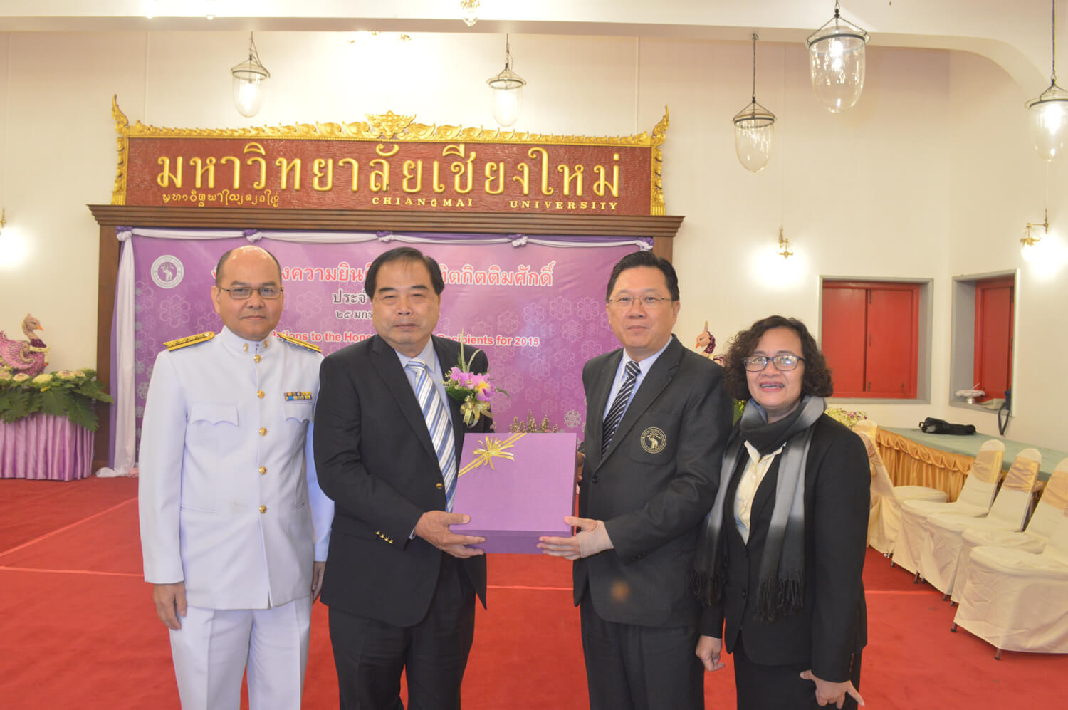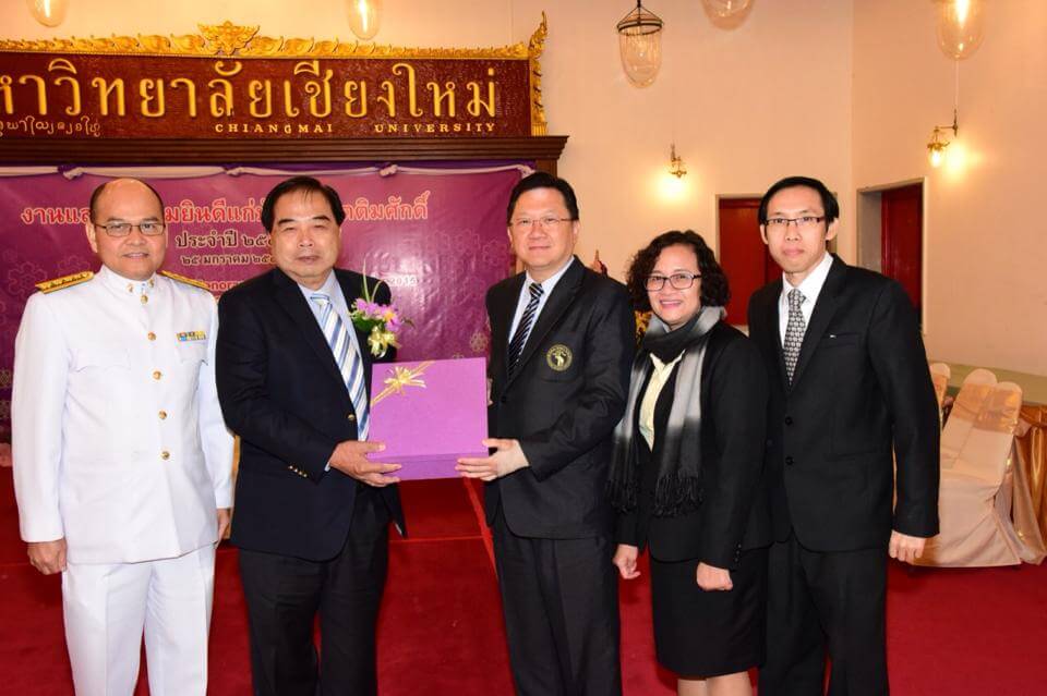 ผู้ช่วยศาสตราจารย์ นพ.ศุภชัย เชื้อรัตนพงษ์ รองอธิการบดีฝ่ายกิจการสภามหาวิทยาลัย มอบของที่ระลึกแสดงความยินดีกับคุณอนันต์ ลี้ตระกูล ในโอกาสที่ได้ปริญญาวิทยาศาสตร์ดุษฎีบัณฑิตกิตติมศักดิ์ สาขาการจัดการความรู้ จากมหาวิทยาลัยเชียงใหม่ เมื่อวันที่ 25 มกราคม 2559 ณ ศาลาธรรม มหาวิทยาลัยเชียงใหม่