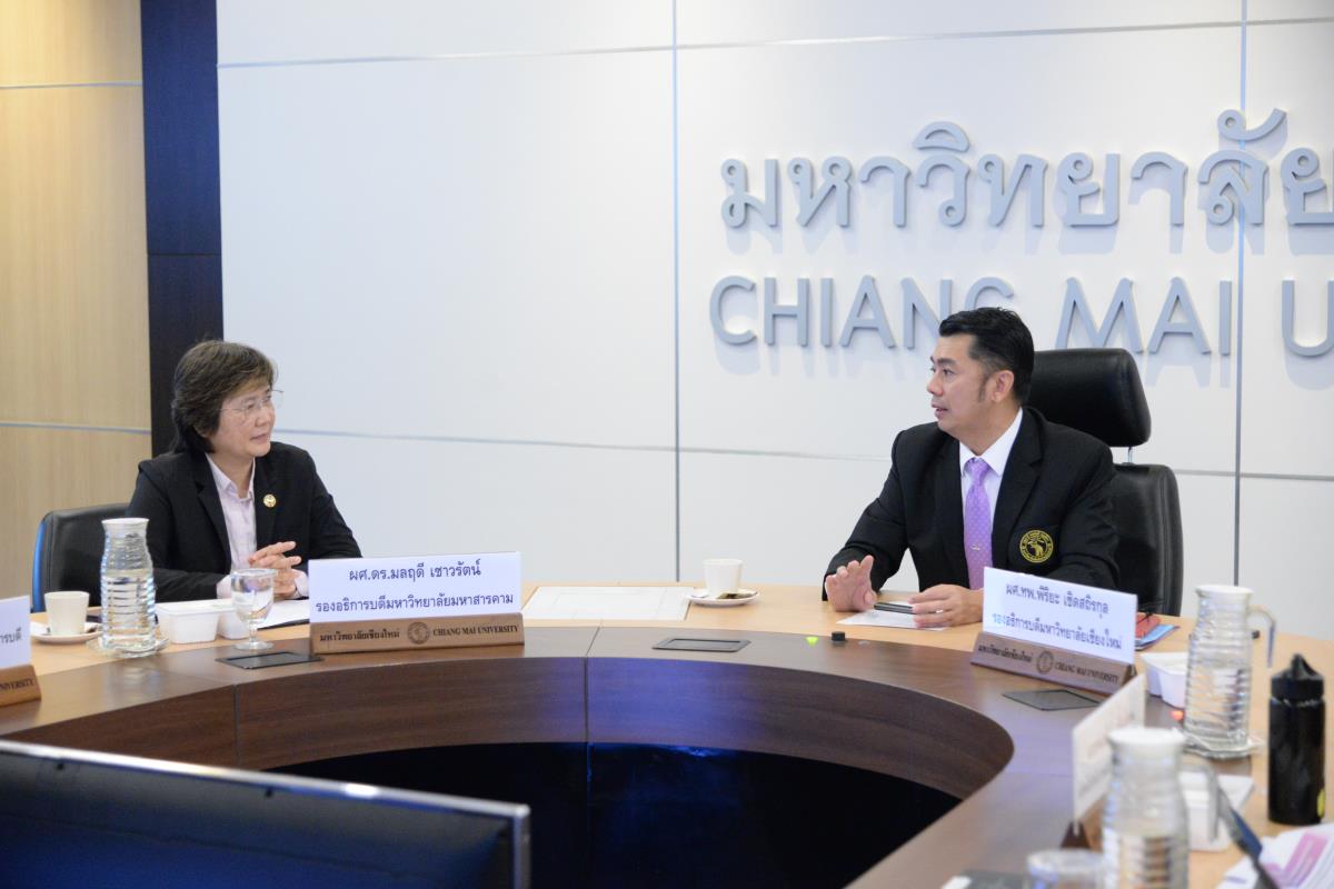 ผู้ช่วยศาสตราจารย์ ทพ.พิริยะ เชิดสถิรกุล รองอธิการบดี เลขานุการสภามหาวิทยาลัยเชียงใหม่ ให้การต้อนรับผู้ช่วยศาสตราจารย์ ดร.มลฤดี เชาวรัตน์ รองอธิการบดีฝ่ายกิจการสภา มหาวิทยาลัยมหาสารคาม และคณะจากกลุ่มงานประชุม สำนักงานอธิการบดี มหาวิทยาลัยมหาสารคาม ในโอกาสที่มาศึกษาดูงานแลกเปลี่ยนเรียนรู้ด้านการบริหารงานและการดำเนินงานของสภามหาวิทยาลัยเชียงใหม่ โดยมีนายทนงศักดิ์ เชื้อเจ็ดตน หัวหน้าสำนักงานสภา พร้อมด้วยบุคลากรร่วมให้การต้อนรับ ณ ห้องประชุมตะวัน กังวานพงศ์ อาคารยุทธศาสตร์ สำนักงานมหาวิทยาลัย มหาวิทยาลัยเชียงใหม่ วันศุกร์ที่ 4 กรกฎาคม พ.ศ. 2568