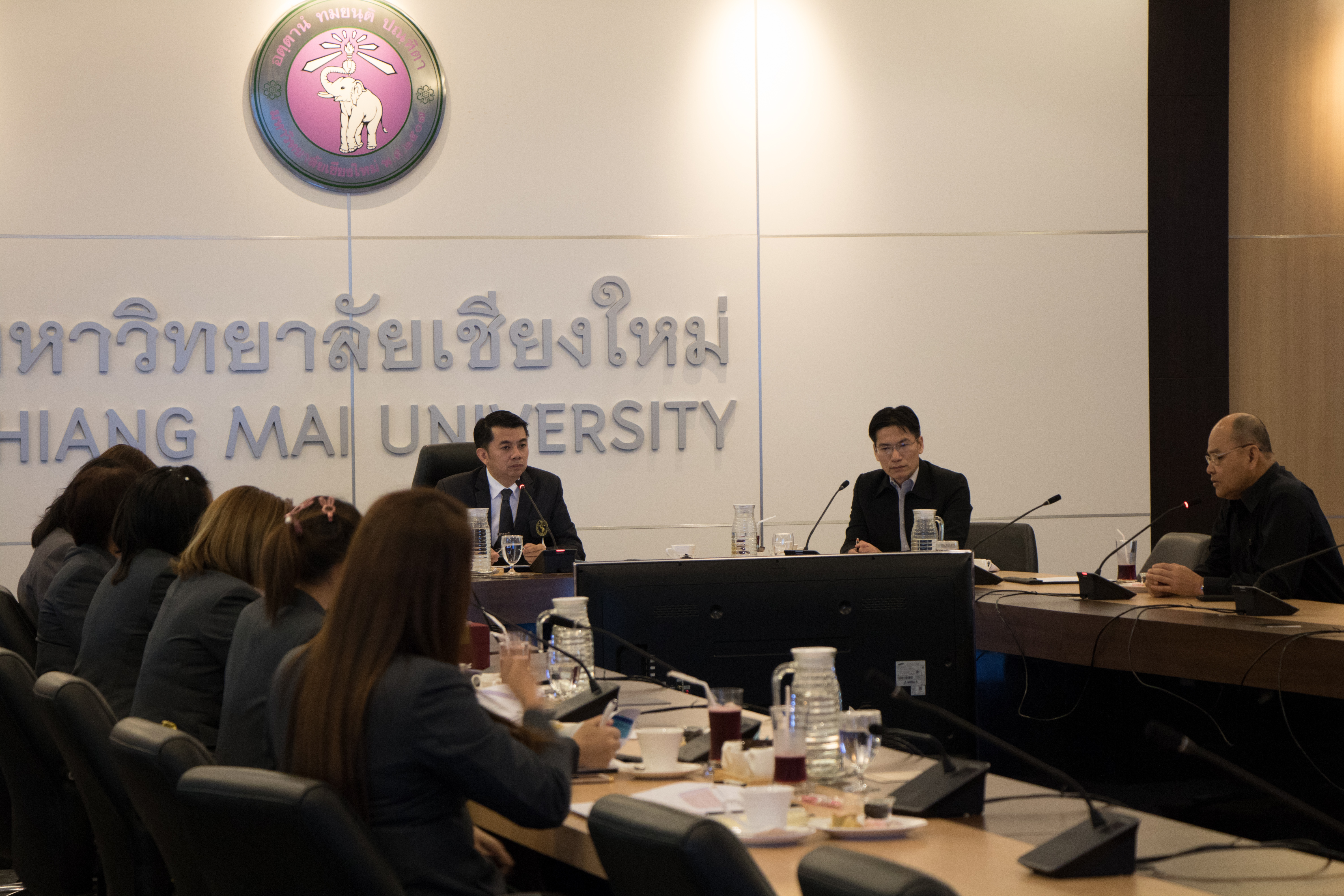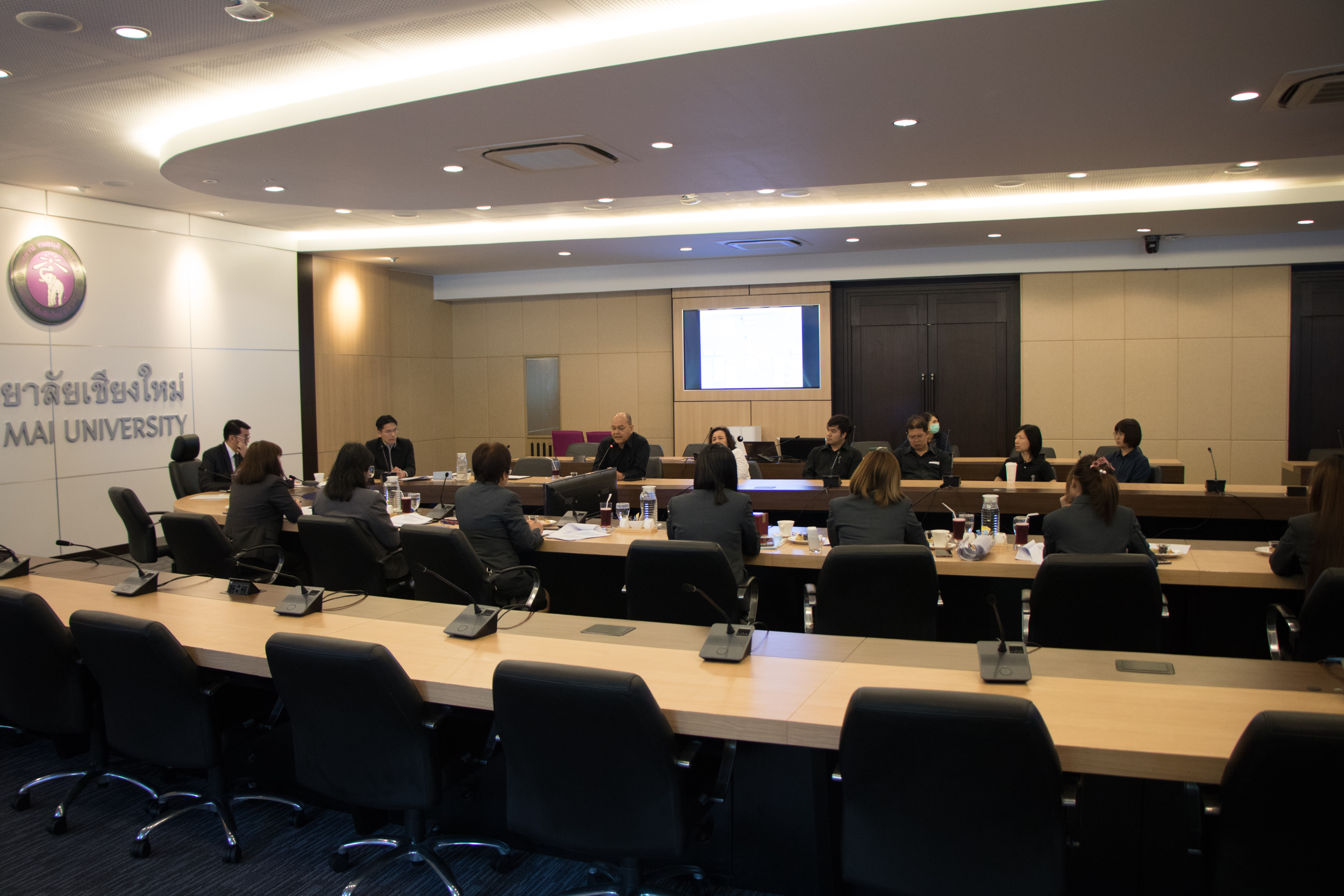 ผู้ช่วยศาสตราจารย์ ทันตแพทย์พิริยะ เชิดสถิรกุล รองอธิการบดีฝ่ายกิจการสภามหาวิทยาลัยและเจ้าหน้าที่สำนักงานสภามหาวิทยาลัย ต้อนรับคณะศึกษาดูงานจากมหาวิทยาลัยศรีนครินทรวิโรฒ เนื่องในโอกาสที่มาศึกษาดูงานสำนักงานสภามหาวิทยาลัยเชียงใหม่ ณ ห้องประชุมตะวัน กังวานพงศ์ อาคารยุทธศาสตร์ สำนักงานมหาวิทยาลัย มหาวิทยาลัยเชียงใหม่ ในวันที่ 5 มิถุนายน พ.ศ. 2562